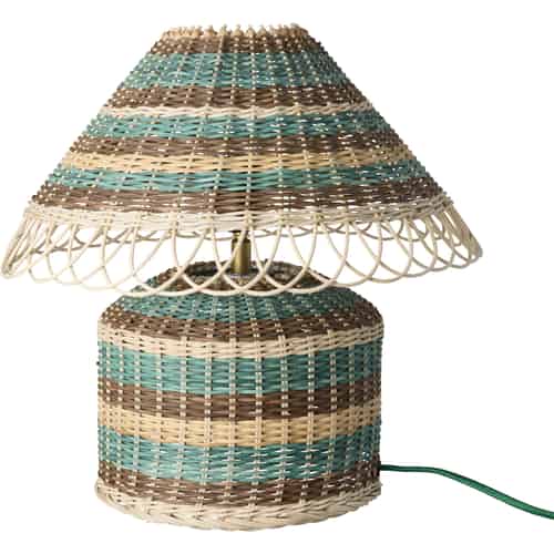 Rice Rattan bordlampe - Brunlige striber - E27-fatning og 2-benet stik - Lille