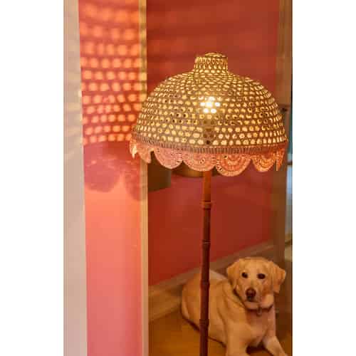 Rice Rattan bordlampe - Lyserøde striber - E27-fatning og 2-benet stik - Høj