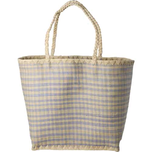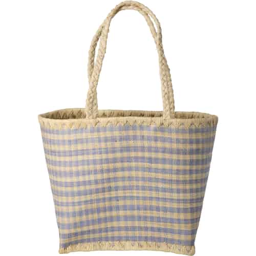 Rice Raffiataske - Blå tern - Raffiahåndtag - Stor
