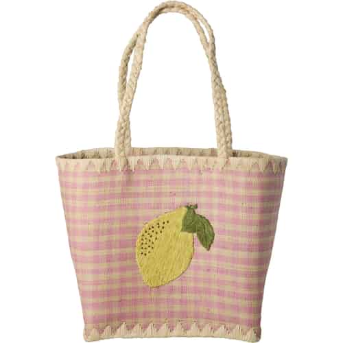 Rice Raffiataske - Citronbroderi - Lyserød - Lille