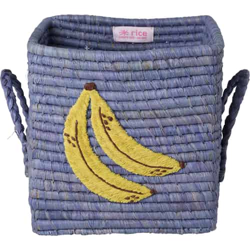 Rice Raffiakurv - Firkantet "Big Banana" broderi - Raffiahåndtag - Lille
