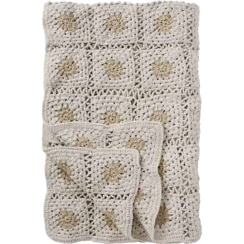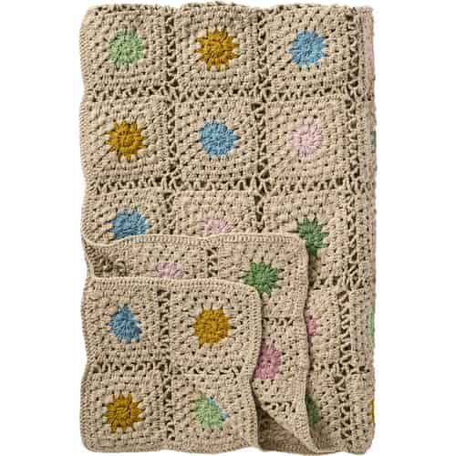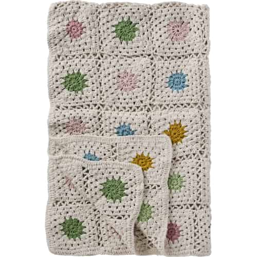 Ib Laursen Plaid - Hæklet - Naturfarvet - Flerfarvede blomster 130 x 170 cm