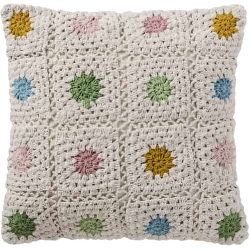 Ib Laursen Pudebetræk - Hæklet - Creme - Flerfarvede blomster, bagside cremefarvet kanvas 50 x 50 cm