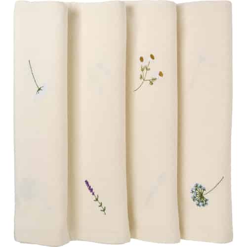 Ib Laursen Dug "Flora" aflang med skærmblomster, lavendel og margueritter - Smørcreme