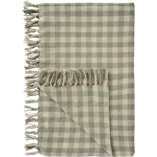 Ib Laursen Plaid - Natur/Støvet grøn tern 130 x 160 cm