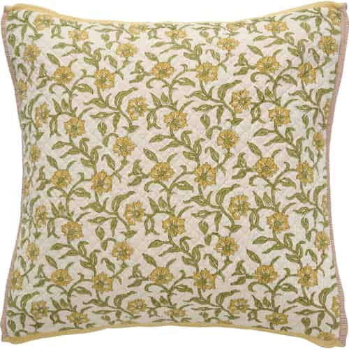 Ib Laursen Pudebetræk "Vigga" - Gult og grønt print, quiltet med neutral bagside 50 x 50 cm
