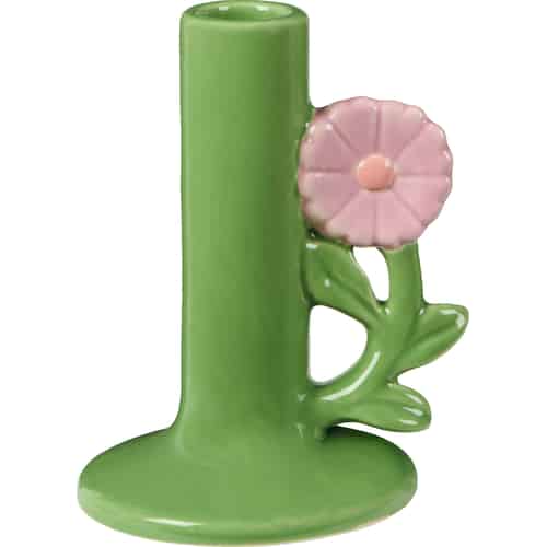 Ib Laursen Lysestage - til 2,2 cm lys - Grøn med lyserød blomst