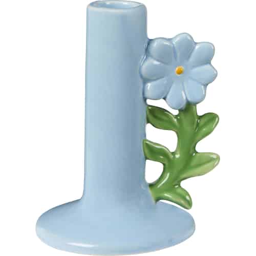 Ib Laursen Lysestage - til 2,2 cm lys - Støvet blå med støvet blå blomst