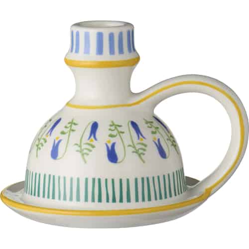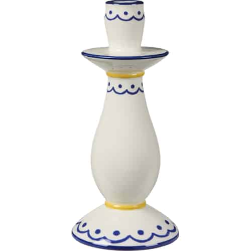 Ib Laursen Lysestage - til 2,2 cm lys - Hvid - Blåt og gult mønster