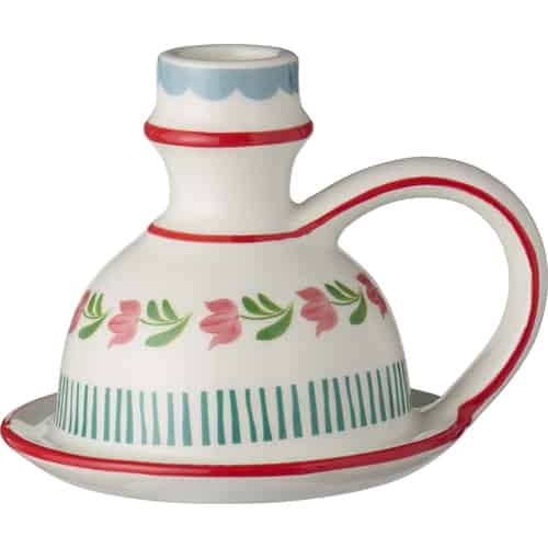 Ib Laursen Lysestage - til 2,2 cm lys - Hvid med rødt og grønt mønster