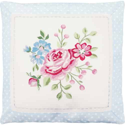 GreenGate Pudebetræk "Nikolina Pale Blue" med Broderi 40 x 40 cm