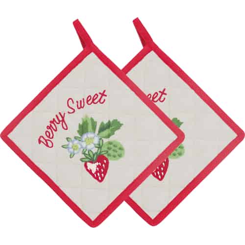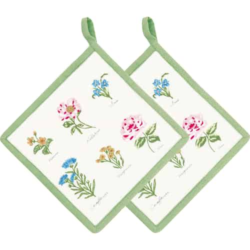 GreenGate Grydelapper "Berry Sand" med broderi sæt af 2